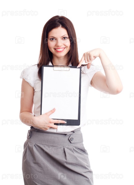 Молодая бизнес-леди предлагает ознакомиться с документами