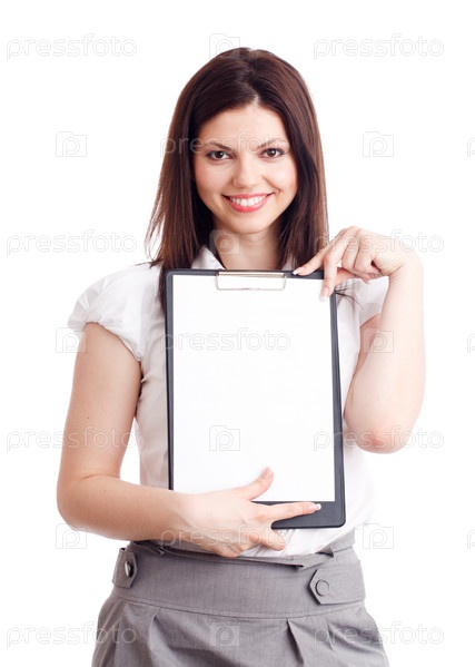 Молодая бизнес-леди предлагает ознакомиться с документами