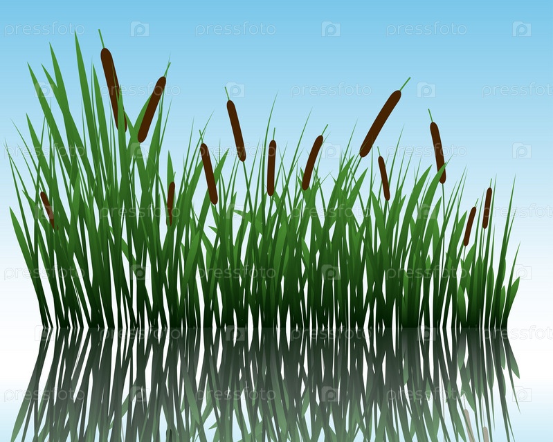 Рогоз в воде на голубом фоне