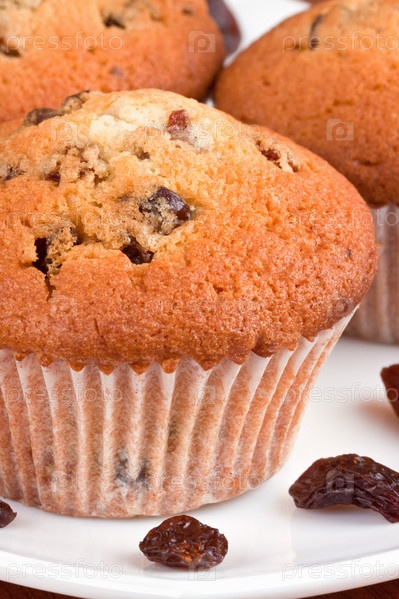 Кексы с изюмом на тарелке крупным планом