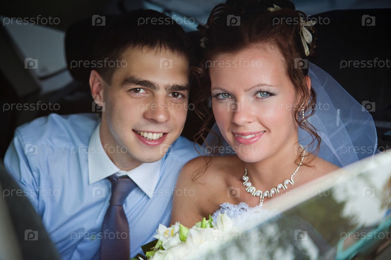 Жених и невеста едут в машине