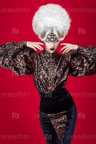 Портрет женщины с белыми волосами на красном фоне