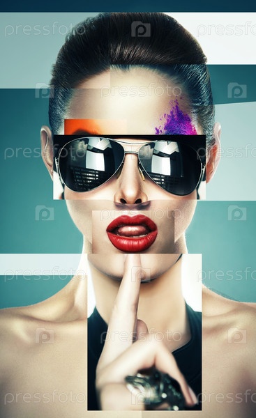 Коллаж из фотографий женщины в солнцезащитных очках