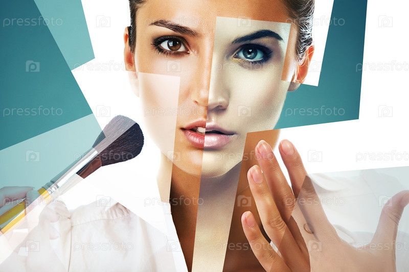 Портрет женщины с кистью для макияжа