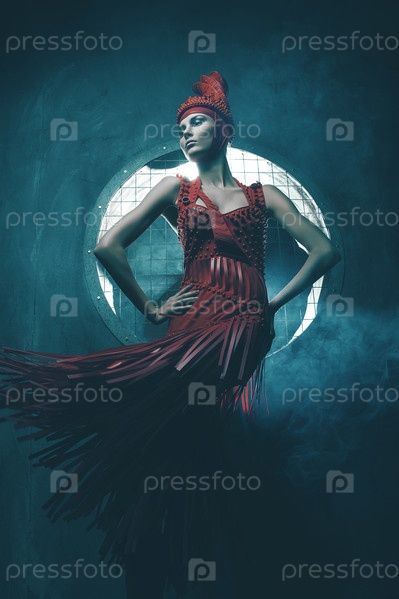 Гламурная женщина в красном в круге света