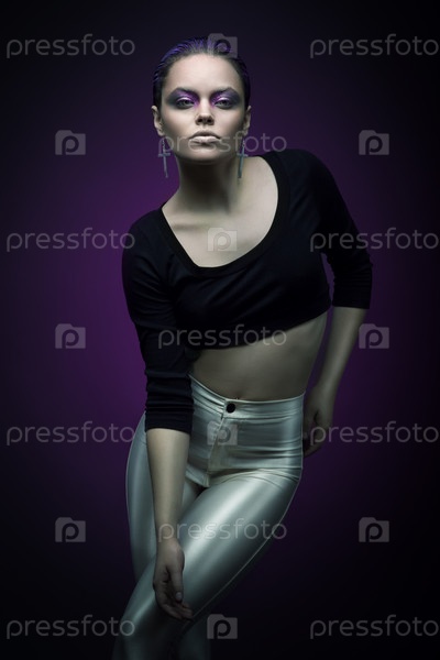 Женщина с фиолетовым макияжем