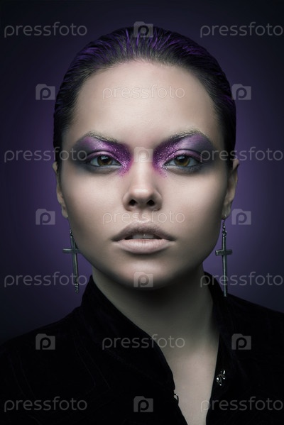Женщина с фиолетовым макияжем