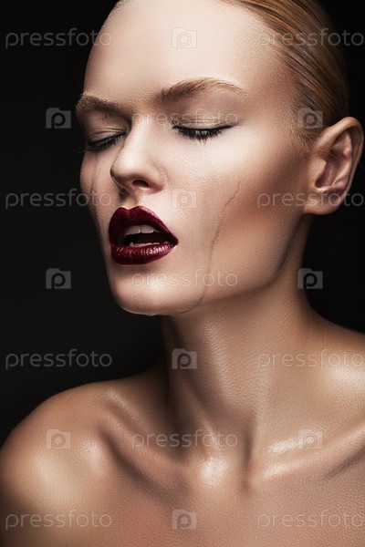 Плачущая женщина с красными губами