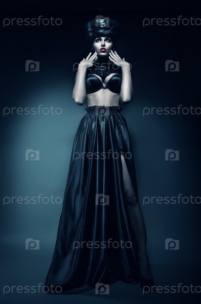 Сексуальная женщина в черной шляпе и бюстгальтере