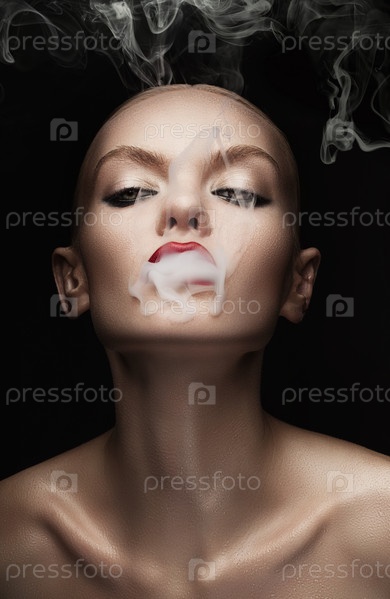 Женщина с дымом во рту