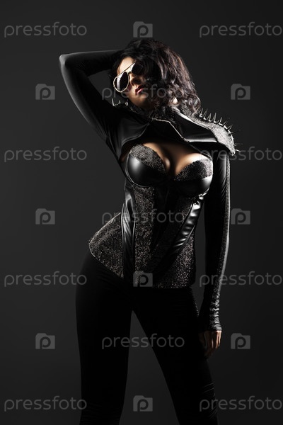 Великолепная женщина в кожаном костюме