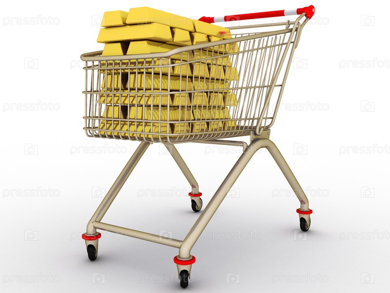 Покупательская тележка с золотом, иллюстрация на белом фоне