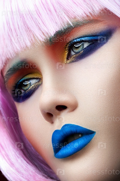 Лицо женщины с голубыми губами