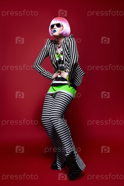 Женщина в костюме в полоску