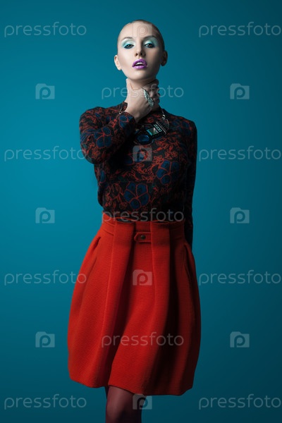 Бледная женщина в красной юбке