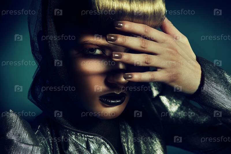 Красивая модель позирует на темном фоне