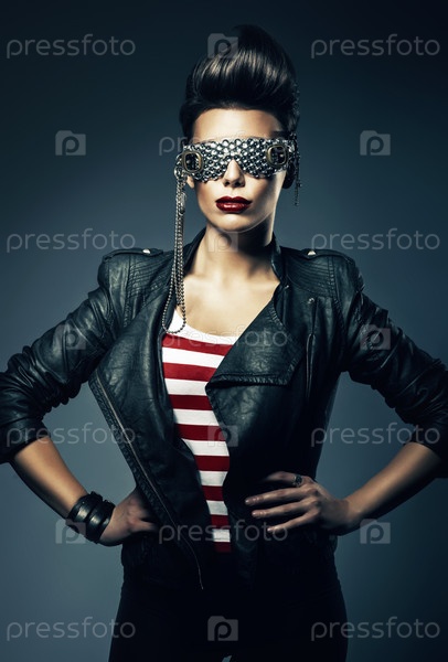 Красивая женщина в черной кожаной куртке