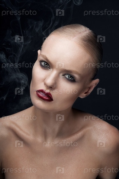 Красивая модель позирует на темном фоне