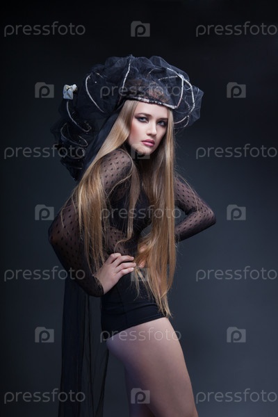 Красивая модель позирует на темном фоне