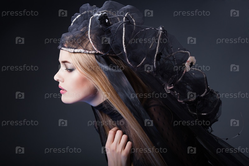 Красивая модель позирует на темном фоне