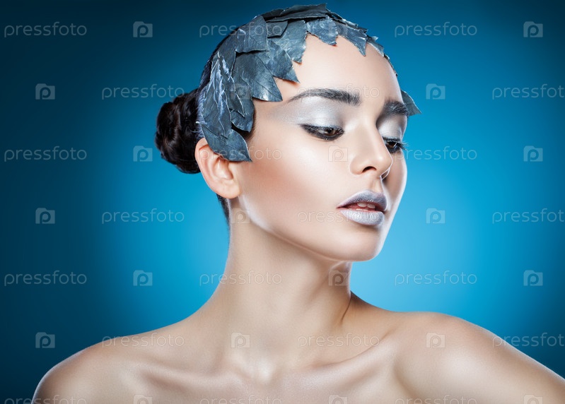 Женщина в аксессуаре из серебряных листьев