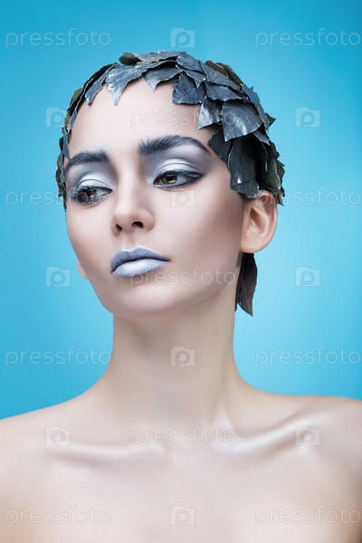 Женщина в аксессуаре из серебряных листьев