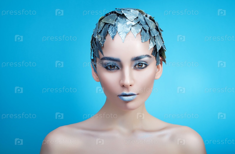 Женщина в аксессуаре из серебряных листьев