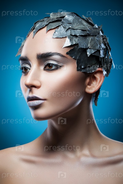 Женщина в аксессуаре из серебряных листьев