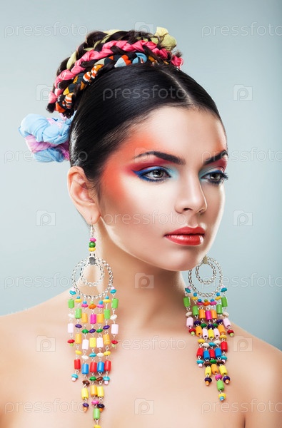 Модель с ярким макияжем и украшениями