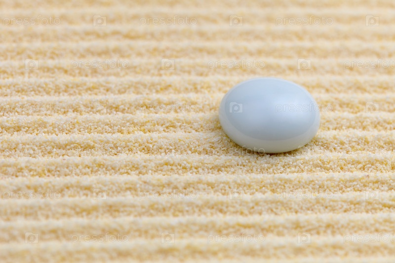 Белый маленький камень на желтом песке - фон дзен-сада