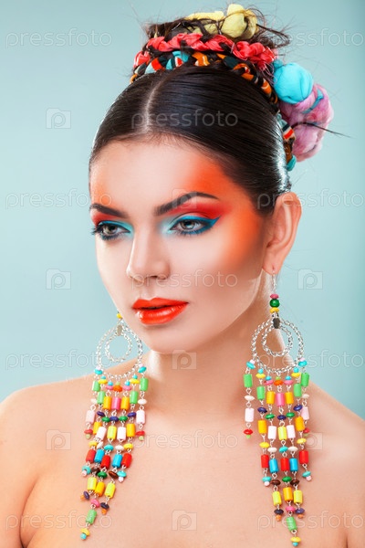Модель с ярким макияжем и украшениями
