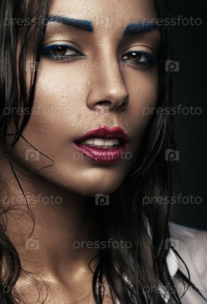 Красивая модель позирует на темном фоне