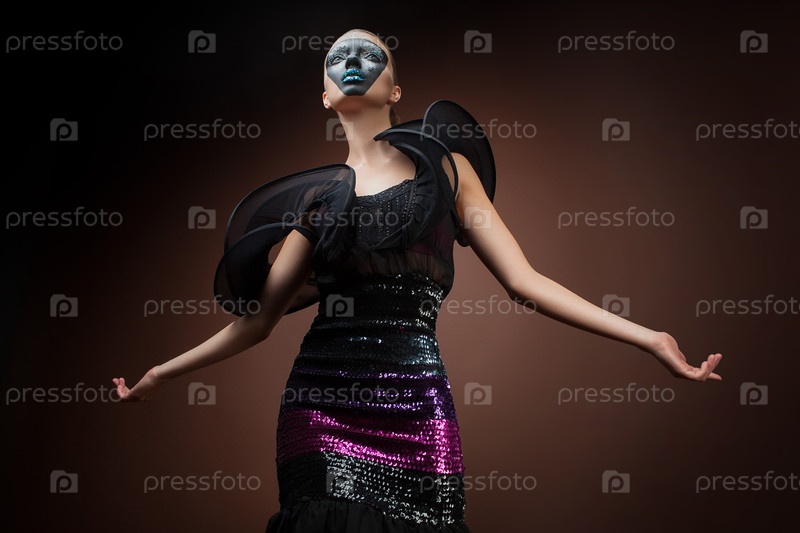 Женщина в черном платье и маске