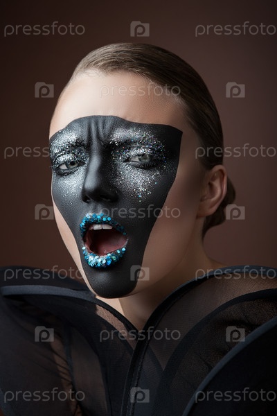 Женщина с черной краской на лице