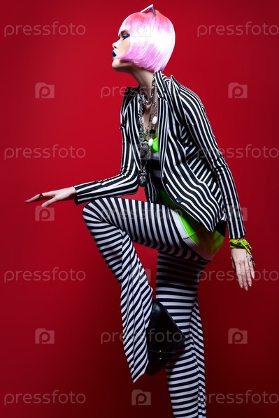 Женщина в полосатом костюме