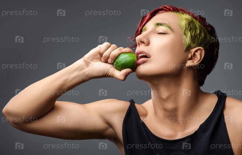 Стильный мужчина с красными и желтыми волосами
