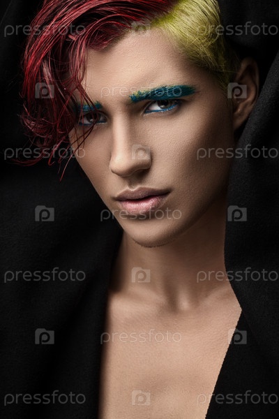 Стильный мужчина с красными и желтыми волосами