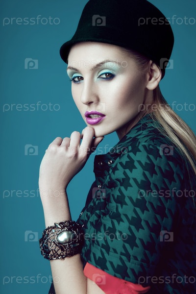 Красивая женщина на синем фоне