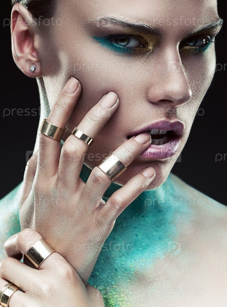 Сексуальная женщина с краской на шее