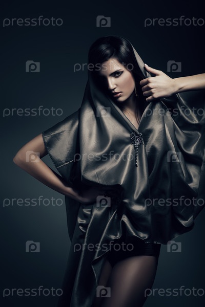 Красивая модель позирует на темном фоне