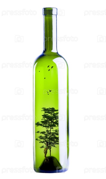 Женщина и дерево в бутылке