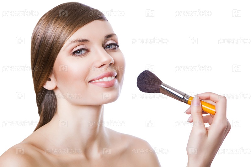 Женщина наносит пудру на лицо