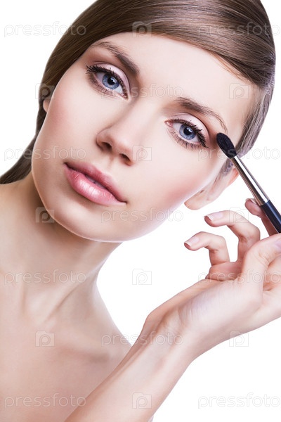 Красивая женщина наносит тени