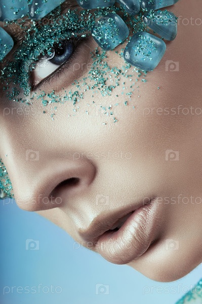 Красивая женщина с голубыми камнями на лице
