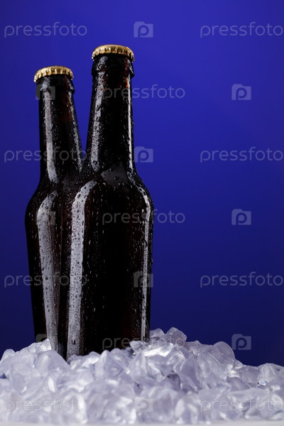 Две бутылки пива на синем фоне