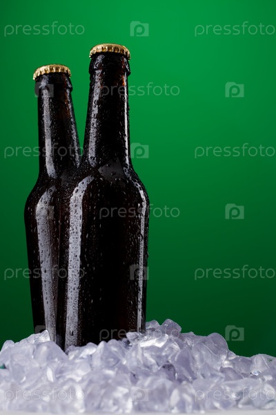 Две бутылки пива на зеленом фоне