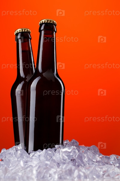 Две бутылки пива на красном фоне