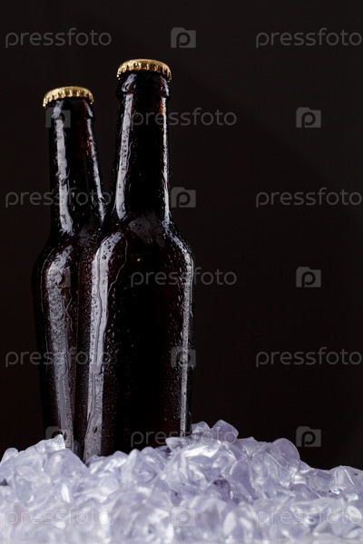 Две бутылки пива на черном фоне