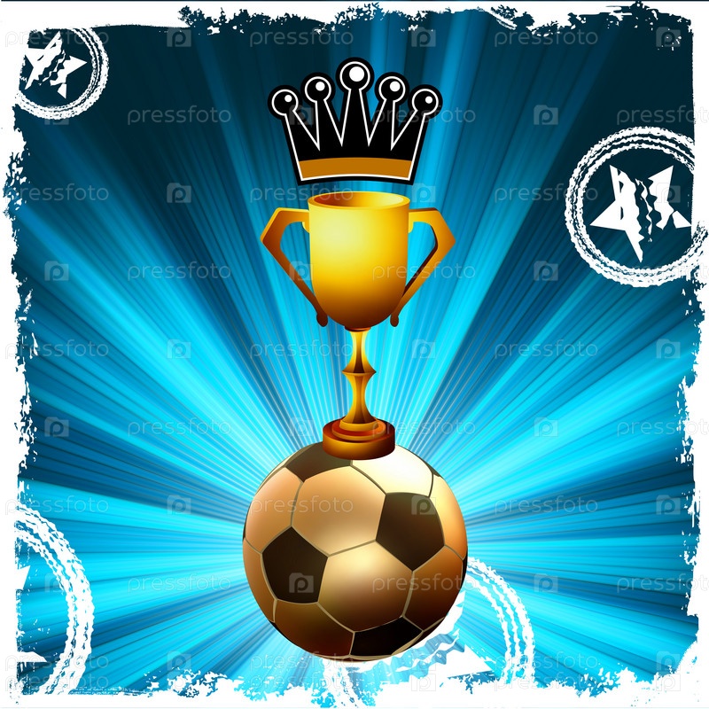 Золотой кубок и корона победителя на футбольном мяче
