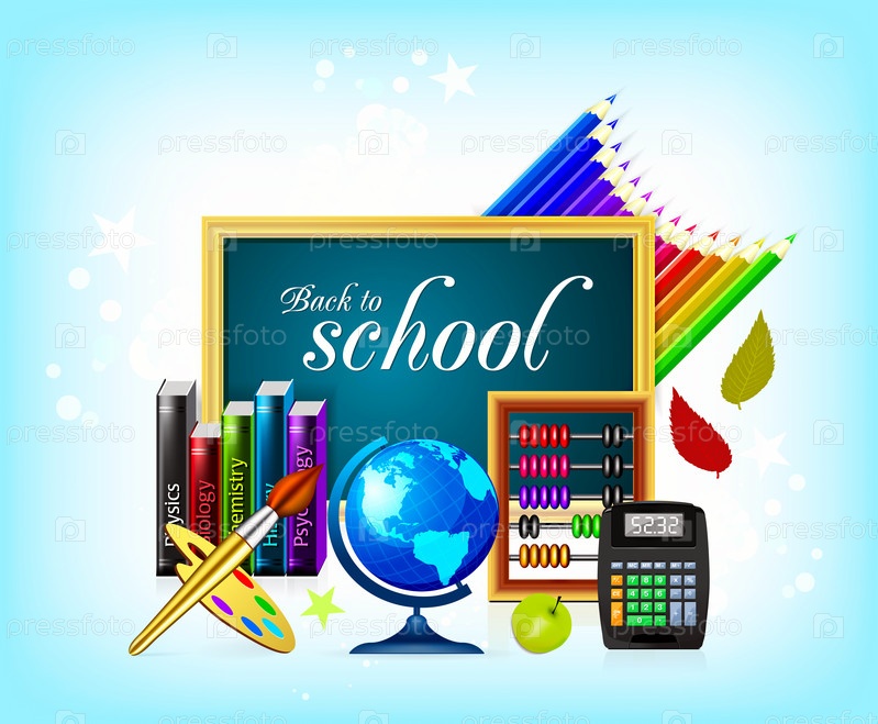 Школьные атрибуты на голубом фоне